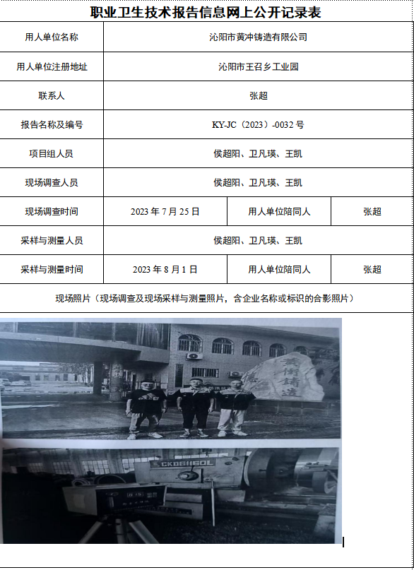 沁阳市黄冲铸造有限公司2023年度定期检测