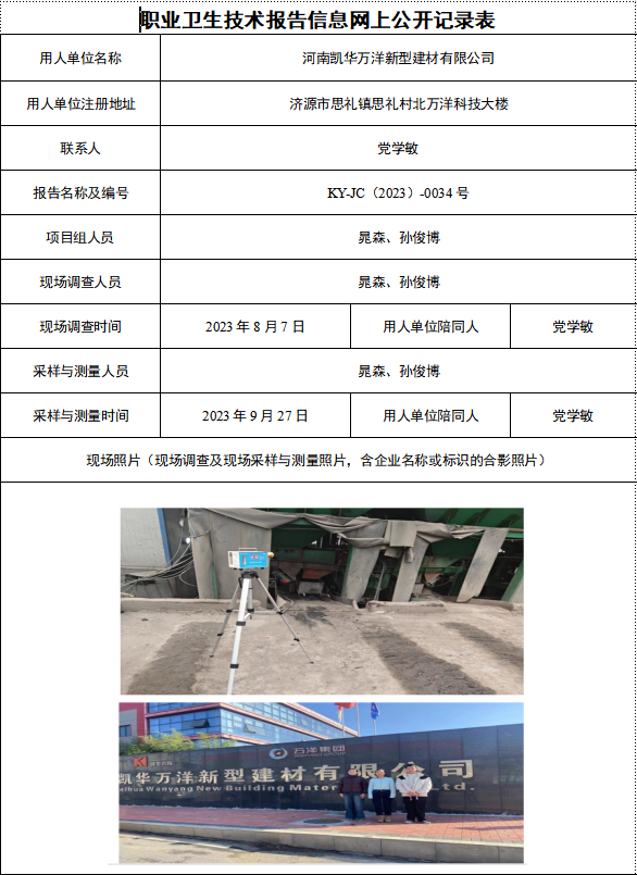 河南凯华万洋新型建材有限公司2023年度定期检测