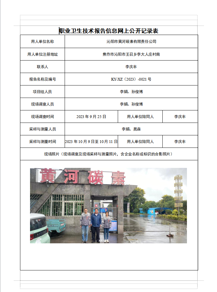 沁阳市黄河碳素有限责任公司2023年度定期检测