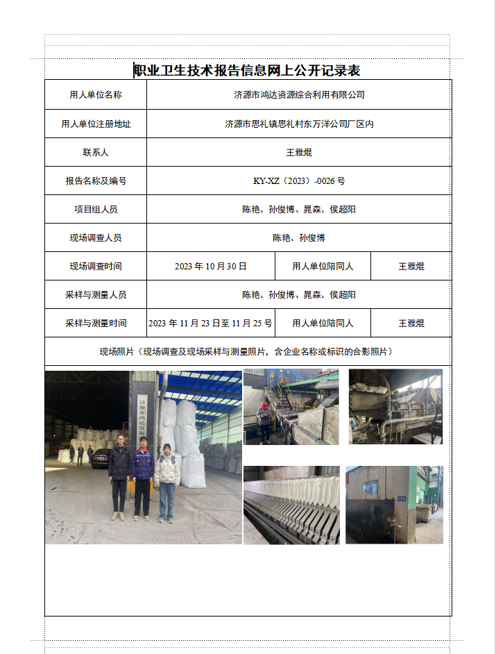 济源市鸿达资源综合利用有限公司2023年度现状评价