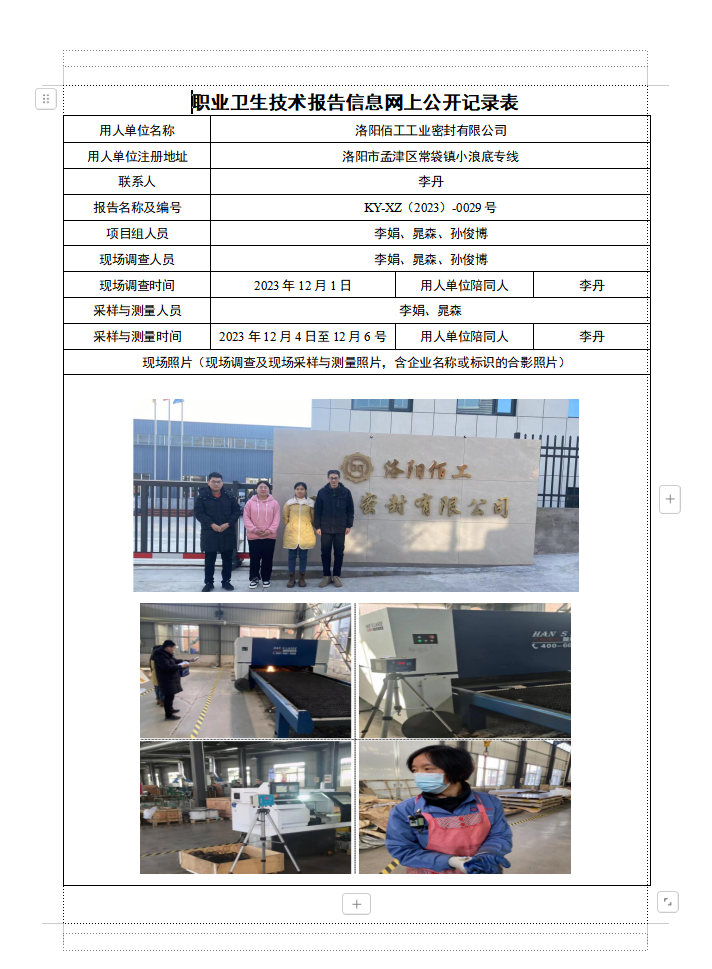 洛阳佰工工业密封有限公司2023年度现状评价
