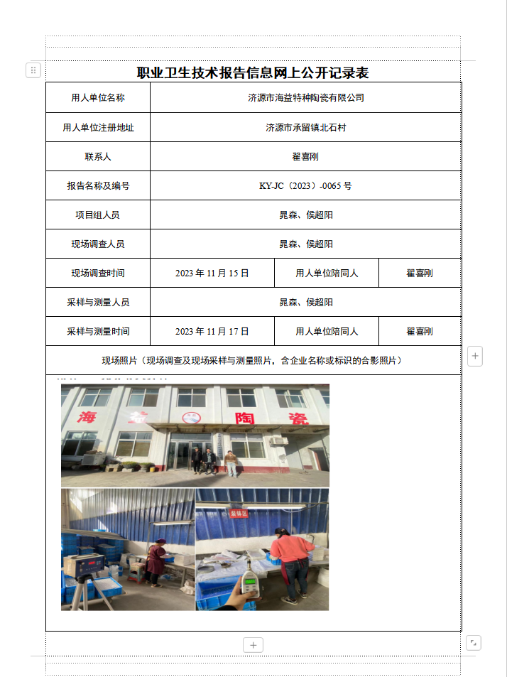 济源市海益特种陶瓷有限公司2023年度定期检测