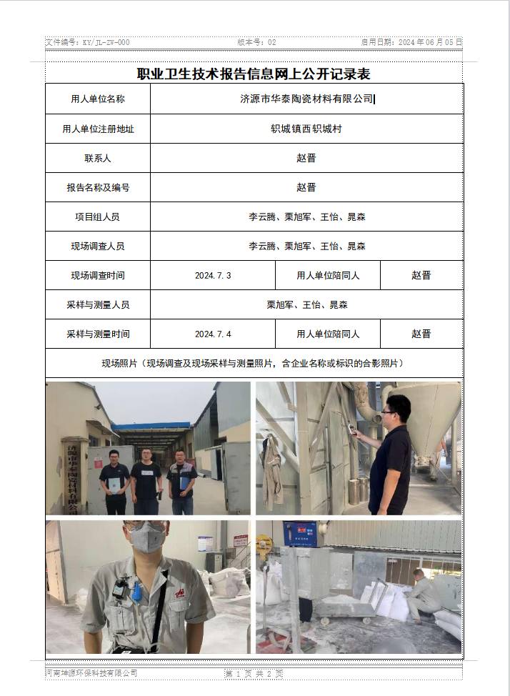 济源市华泰陶瓷材料有限公司2024年度定期检测