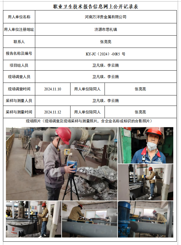 河南万洋贵金属有限公司2024年度定期检测