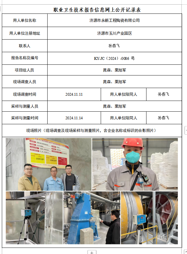 济源市永新工程陶瓷有限公司2024年度定期检测