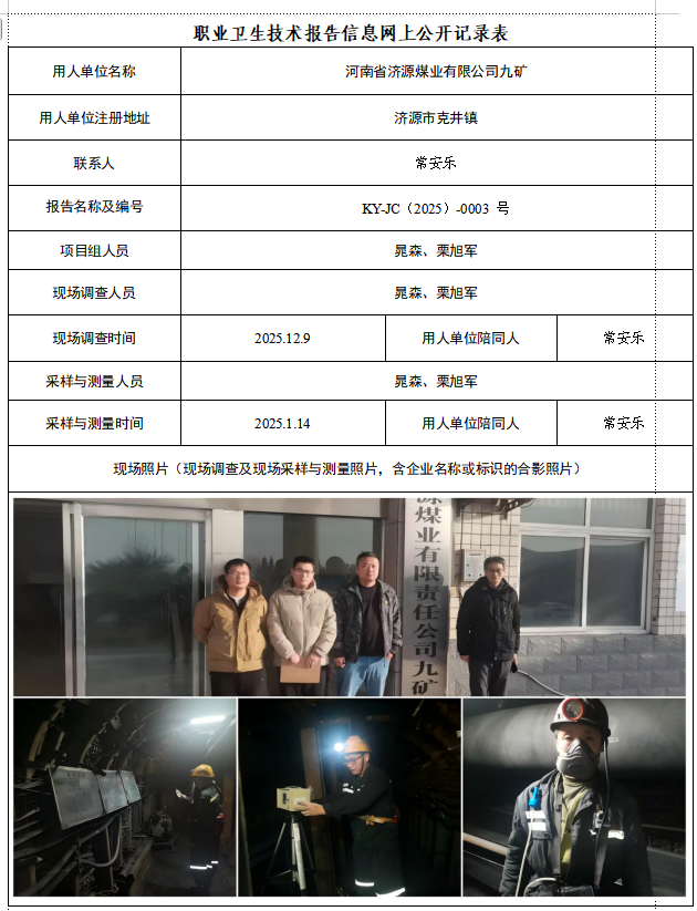 河南省济源煤业有限公司九矿2025年度定期检测