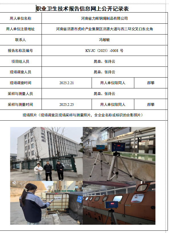 河南省力辉钢绳制品有限公司2025年度定期检测