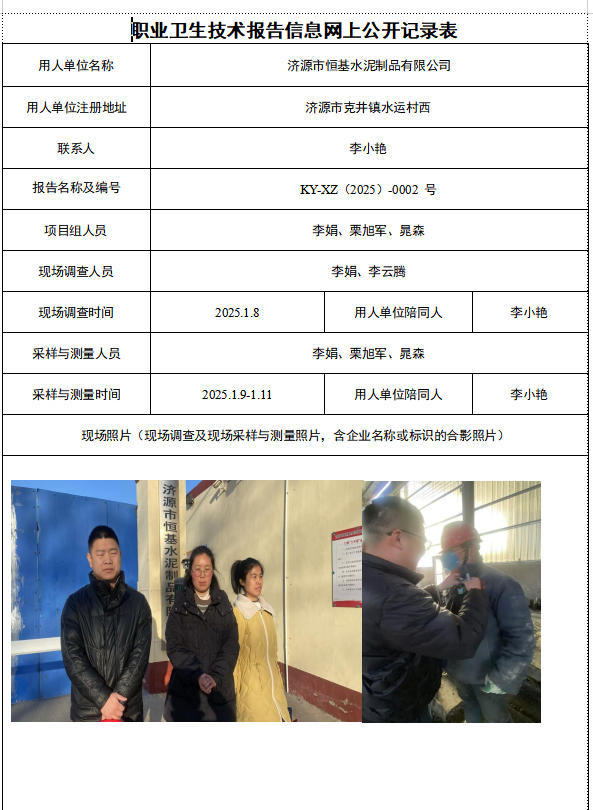 济源市恒基水泥制品有限公司2025年度现状评价