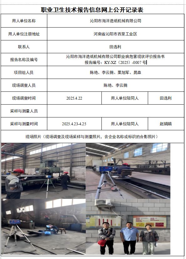 沁阳市海洋造纸机械有限公司2025年度现状评价