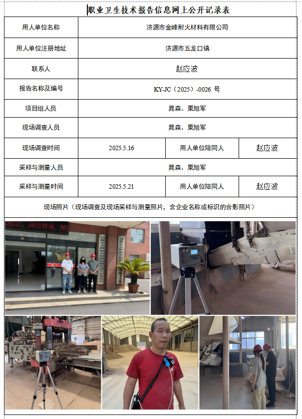 济源市金峰耐火材料有限公司2025年度定期检测